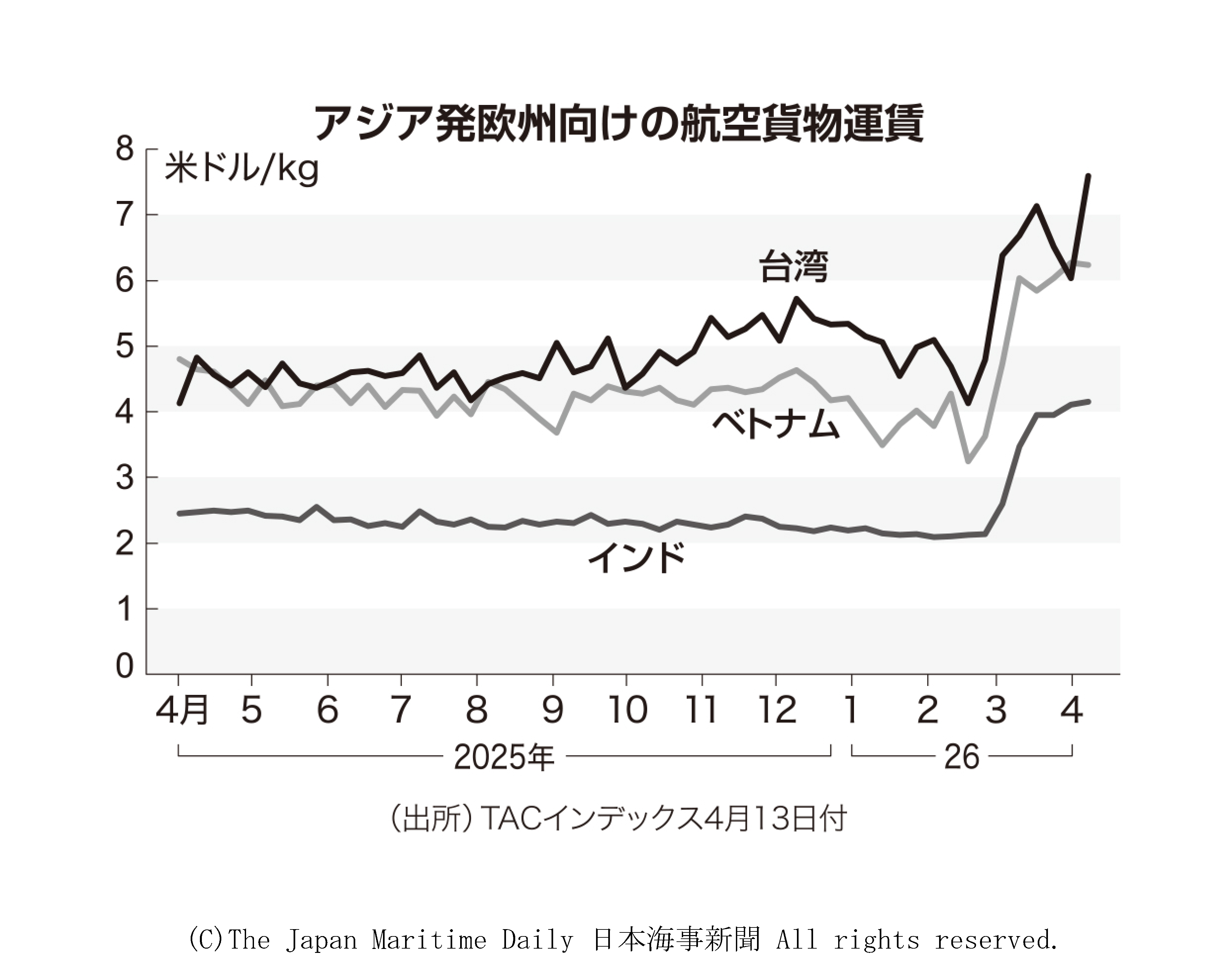 [CAPE]ケープ型は上昇推移となった。大西洋水域は5月積みブラジル出し、北大西洋出しともに荷動…