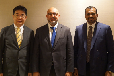 (From left) Mr. Uchida, Mr. Banga, and Mr. Subramaniam