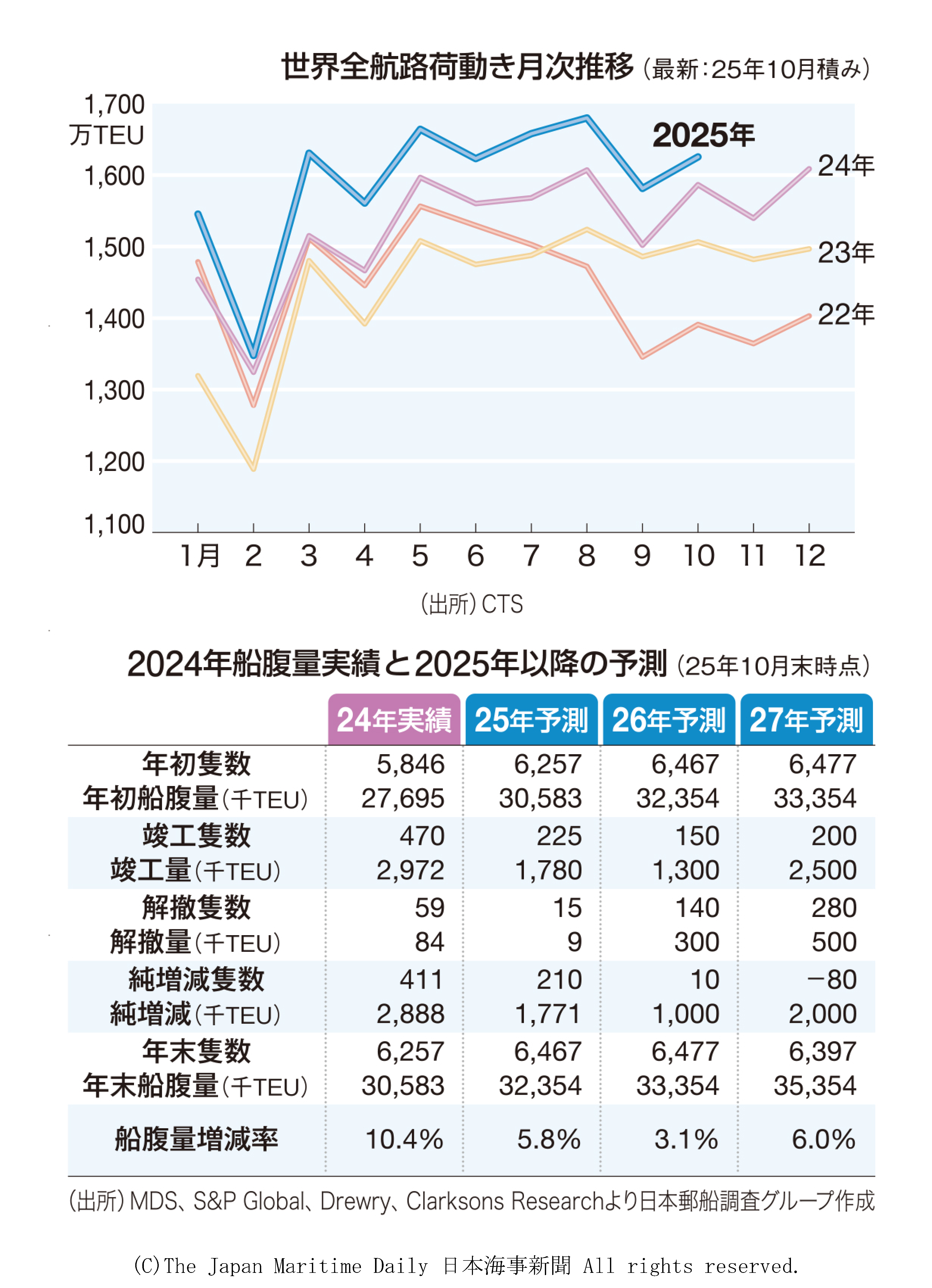 %E3%80%80On+December+16%2C+the+NYK+Research+Group+held+an+explanatory+meeting+to+coincide+with+the+publication+of+its+research+report%2C+%E2%80%9CGlobal+%3Cb%3EContainer%3C%2Fb%3E+Transport+and+Service+Status+2025+Edition.%E2%80%9C+According+to+the+report%2C+global+container+cargo+movement+in+2025+is+expected+to+reach+a+cumulative+total+of+approximately+159+million+TEU+%2820-foot+equivalent%29+from+January+to+October%2C+a+4%25+increase+from+the+same+period+last+year%2C+and+to+set+a+new+record+for+the+full+year+in+the+second+year+running.+While+shipments+from+Asia+to+North+America+decreased+due+to+the+impact+of+the+US+tariff+hike%2C+shipments+to+Europe%2C+emerging+countries%2C+and+within+Asia+were+strong%2C+pushing+up+the+overall+figure.+Gentaro+Hara%2C+deputy+head+of+group%2C+mentioned+that+the+US+midterm+elections+are+coming+up+in+2026+and+said%2C+%E2%80%9CCargo+movements+will+change+due+to+price+control+measures%2C+cash+payments%2C+subsidy+policies%2C+etc.%2C+so+we+will+be+closely+monitoring+the+impact+of+these.%E2%80%9C+%3Cbr%3E+%3Cbr%3E%E3%80%80Looking+at+cargo+movements+by+route+from+January+to+October+%28CTS+statistics%29%2C+shipments+from+Asia%2C+including+China%2C+to+North+America+%28USA%2C+Canada%2C+Mexico%29+were+down+4%25+compared+to+the+same+period+last+year.+However%2C+shipments+to+Asia+were+up+5%25%2C+shipments+to+Europe+were+up+9%25%2C+shipments+to+the+Indian+subcontinent%2C+the+Middle+East%2C+and+Latin+America+were+up+15%25+each%2C+and+shipments+to+Africa+were+up+26%25.+The+decrease+in+exports+to+North+America+was+offset+by+exports+to+Europe%2C+Asia%2C+and+emerging+countries.+%3Cbr%3E%E3%80%80Cargo+movements+from+Asia+to+the+United+States+from+January+to+October+%28US+JOC-PIERS+statistics%29+increased+by+2%25+from+the+same+period+last+year+to+18.39+million+TEU.+Until+April%2C+exports+increased+due+to+advance+shipments+in+anticipation+of+US+tariff+hikes%2C+but+then+fell+sharply.+Although+there+was+a+temporary+recovery+following+the+US-China+tariff+agreement+in+May%2C+the+peak+for+the+year-end+shopping+season+ended+earlier+than+usual+in+August%2C+and+sales+have+been+below+the+previous+year%E2%80%99s+level+since+September.+While+shipments+from+China+have+been+declining+since+May%2C+shipments+from+ASEAN+%28Association+of+Southeast+Asian+Nations%29+remained+above+the+previous+year%E2%80%99s+volume+until+October%2C+and+tariff+policies+are+changing+the+regional+composition+of+global+cargo+movements.+%3Cbr%3E%E3%80%80Total+cargo+from+Asia+to+Europe+%28CTS+statistics%29+from+January+to+October+increased+by+9%25+to+16.29+million+TEU.+Cargo+movements+increased+due+to+the+longer+transport+times+as+a+result+of+rerouting+through+the+Cape+of+Good+Hope.+In+August%2C+cargo+volumes+exceeded+1.85+million+TEU%2C+setting+a+new+monthly+record.+Cargo+movements+to+Africa+%28CTS+statistics%29+increased+by+26%25+to+3.85+million+TEU%2C+approaching+the+volume+of+cargoes+to+Latin+America.+%3Cbr%3E%E3%80%80%E2%96%A0+Tonnage+growth+slows+%3Cbr%3E%E3%80%80Global+container+shipping+capacity+is+expected+to+reach+approximately+32.35+million+TEU+by+the+end+of+2025%2C+a+6%25+increase+from+the+end+of+the+previous+year.+This+will+slow+growth+compared+to+the+10%25+increase+in+2024.+As+of+the+end+of+October%2C+the+completion+of+newly+built+ships+was+still+at+a+high+level+of+1.78+million+TEU%2C+while+the+number+of+ships+scrapped+was+extremely+low+at+just+9%2C000+TEU.+Demand+for+tonnage+was+supported+by+the+continued+detour+around+the+Cape+of+Good+Hope%2C+increased+cargo+movements+on+routes+to+emerging+countries%2C+and+frequent+port+congestion.+%3Cbr%3E%E3%80%80Newbuilding+orders+continue+in+2025%2C+with+the+backlog+exceeding+10+million+TEU.+In+2025%2C+orders+for+large+ships+of+over+18%2C000+TEU+and+small+ships+of+less+than+4%2C999+TEU+increased.+In+terms+of+ship+allocation%2C+progress+has+been+made+in+reallocating+fleets+in+response+to+changes+in+cargo+movements+and+transferring+ships+from+European+and+North+American+routes+to+routes+to+emerging+countries.+The+number+of+routes+and+areas+in+which+24%2C000-TEU+ultra-large+ships+are+operating+has+expanded.+%3Cbr%3E%3Cbr%3E%3Cbr%3E%3Cbr%3EDisclaimer%3A+The+English+translations+provided+through+this+service+are+the+result+of+translations+made+by+The+Japan+Maritime+Daily+or+automatically+and+mechanically+translated+by+The+Japan+Maritime+Daily+using+an+automated+translation+system+provided+by+a+third+party+after+certain+processing+of+the+Japanese+content+licensed+by+the+third+party.+In+terms+of+the+English+translation%2C+The+Japan+Maritime+Daily+and+MarineNet+Co.%2C+Ltd.+make+no+warranty+or+burden+of+any+kind%2C+express+or+implied%2C+including+its+accuracy%2C+reliability%2C+validity+or+fitness+for+a+particular+purpose.+MarineNet+Users+should+fully+understand+that+this+service+uses+an+automated+translation+system+that+automatically+and+mechanically+recognizes+and+analyzes+information+and+produces+results.+The+users+should+understand+the+above+conditions+before+using+this+service.%3Cbr%3E%3Cbr%3E%E5%85%8D%E8%B2%AC%E4%BA%8B%E9%A0%85%EF%BC%9A%E3%81%93%E3%81%AE%E3%82%B5%E3%83%BC%E3%83%93%E3%82%B9%E3%82%92%E4%BB%8B%E3%81%97%E3%81%A6%E6%8F%90%E4%BE%9B%E3%81%95%E3%82%8C%E3%82%8B%E8%8B%B1%E8%A8%B3%E3%81%AF%E3%80%81%E6%97%A5%E6%9C%AC%E6%B5%B7%E4%BA%8B%E6%96%B0%E8%81%9E%E3%81%8C%E4%BD%9C%E6%88%90%E3%81%99%E3%82%8B%E3%81%8B%E3%80%81%E5%8F%88%E3%81%AF%E3%80%81%E7%AC%AC%E4%B8%89%E8%80%85%E3%81%8B%E3%82%89%E4%BD%BF%E7%94%A8%E8%A8%B1%E8%AB%BE%E3%82%92%E5%8F%97%E3%81%91%E3%81%9F%E6%97%A5%E6%9C%AC%E8%AA%9E%E3%81%AE%E3%82%B3%E3%83%B3%E3%83%86%E3%83%B3%E3%83%84%E3%82%92%E3%80%81%E6%97%A5%E6%9C%AC%E6%B5%B7%E4%BA%8B%E6%96%B0%E8%81%9E%E3%81%8C%E4%B8%80%E5%AE%9A%E3%81%AE%E5%87%A6%E7%90%86%E3%82%92%E8%A1%8C%E3%81%A3%E3%81%9F%E4%B8%8A%E3%81%A7%E3%80%81%E7%AC%AC%E4%B8%89%E8%80%85%E3%81%8C%E6%8F%90%E4%BE%9B%E3%81%99%E3%82%8B%E8%87%AA%E5%8B%95%E7%BF%BB%E8%A8%B3%E3%82%B7%E3%82%B9%E3%83%86%E3%83%A0%E3%82%92%E5%88%A9%E7%94%A8%E3%81%97%E3%81%A6%E8%87%AA%E5%8B%95%E7%9A%84%E3%83%BB%E6%A9%9F%E6%A2%B0%E7%9