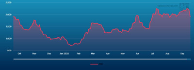BDI(バルチック・ドライ・インデックス、1985=1000)の推移