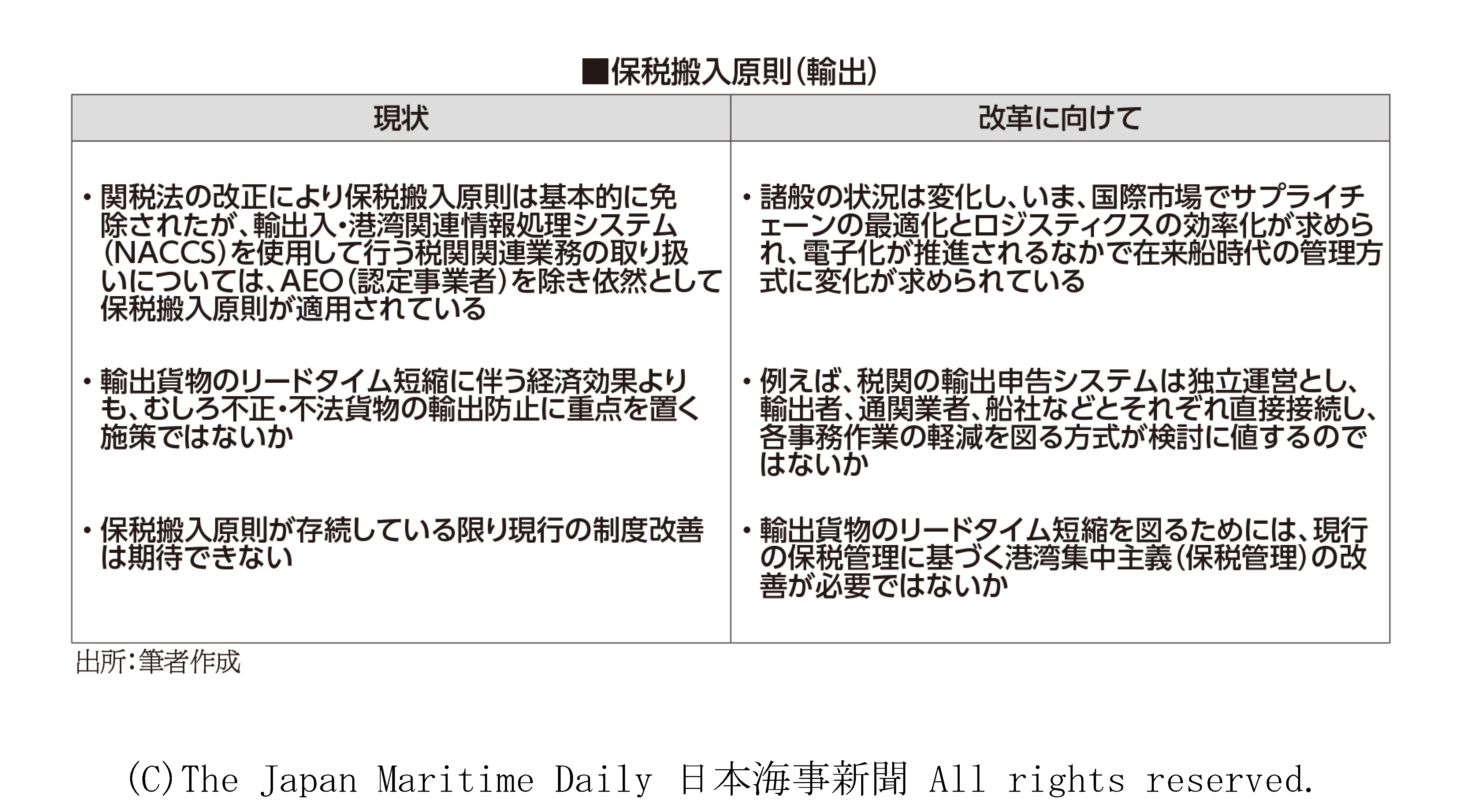 %E3%80%80%E9%9A%8F%E5%88%86%E5%89%8D%E3%81%AB%E3%81%AA%E3%82%8B%E3%81%8C%E3%80%812010%E5%B9%B4%E3%81%AE%E9%96%A2%E7%A8%8E%E3%83%BB%E5%A4%96%E5%9B%BD%E7%82%BA%E6%9B%BF%E7%AD%89%E5%AF%A9%E8%AD%B0%E4%BC%9A%E9%96%A2%E7%A8%8E%E5%88%86%E7%A7%91%E4%BC%9A%E3%81%AB%E3%82%88%E3%82%8B%E3%81%A8%E3%80%81%E3%80%8C%E8%BC%B8%E5%87%BA%E9%80%9A%E9%96%A2%E3%81%AB%E3%81%8A%E3%81%91%E3%82%8B%E4%BF%9D%E7%A8%8E%E6%90%AC%E5%85%A5%E5%8E%9F%E5%89%87%E3%81%AE%E8%A6%8B%E7%9B%B4%E3%81%97%E3%80%8D%E3%81%AB%E3%81%A4%E3%81%84%E3%81%A6%E6%AC%A1%E3%81%AE%E9%80%9A%E3%82%8A%E5%8F%96%E3%82%8A%E3%81%BE%E3%81%A8%E3%82%81%E3%81%A6%E3%81%84%E3%82%8B%E3%80%82%E6%8A%9C%E7%B2%8B%E3%81%97%E3%81%A6%E7%B4%B9%E4%BB%8B%E3%81%99%E3%82%8B%E3%80%82%3Cbr%3E%3Cbr%3E%E3%80%80%E8%BC%B8%E5%87%BA%E7%94%B3%E5%91%8A%E3%81%AB%E3%81%A4%E3%81%84%E3%81%A6%E3%81%AF%E3%80%81%E9%96%A2%E7%A8%8E%E6%B3%95%E4%B8%8A%E3%80%81%E5%8E%9F%E5%89%87%E3%81%A8%E3%81%97%E3%81%A6%E3%80%81%E3%81%9D%E3%81%AE%E7%94%B3%E5%91%8A%E3%81%AB%E4%BF%82%E3%82%8B%E8%B2%A8%E7%89%A9%E3%82%92%E4%BF%9D%E7%A8%8E%E5%9C%B0%E5%9F%9F%E7%AD%89%E3%81%AB%E5%85%A5%E3%82%8C%E3%81%9F%E5%BE%8C%E3%81%AB%E8%A1%8C%E3%81%86%E3%82%82%E3%81%AE%E3%81%A8%E3%81%95%E3%82%8C%E3%81%A6%E3%81%84%E3%82%8B%28%E4%BB%A5%E4%B8%8B%E3%81%93%E3%81%AE%E5%8E%9F%E5%89%87%E3%82%92%E3%80%8C%E8%BC%B8%E5%87%BA%E9%80%9A%E9%96%A2%E3%81%AB%E3%81%8A%E3%81%91%E3%82%8B%E4%BF%9D%E7%A8%8E%E6%90%AC%E5%85%A5%E5%8E%9F%E5%89%87%E3%80%8D%E3%81%A8%E3%81%84%E3%81%86%E3%80%82%29%E3%80%82%3Cbr%3E%E3%80%80%E8%BC%B8%E5%87%BA%E7%94%B3%E5%91%8A%E3%81%8C%E4%BF%9D%E7%A8%8E%E5%9C%B0%E5%9F%9F%E7%AD%89%E3%81%B8%E3%81%AE%E6%90%AC%E5%85%A5%E5%89%8D%E3%81%AB%E8%A1%8C%E3%82%8F%E3%82%8C%E3%82%8C%E3%81%B0%E3%80%81%E7%A8%8E%E9%96%A2%E3%81%AB%E3%81%8A%E3%81%91%E3%82%8B%E5%AF%A9%E6%9F%BB%E3%82%92%E5%89%8D%E5%80%92%E3%81%97%E3%81%97%E3%81%A6%E8%A1%8C%E3%81%86%E3%81%93%E3%81%A8%E3%81%8C%E5%8F%AF%E8%83%BD%E3%81%A8%E3%81%AA%E3%82%8A%E3%80%81%E8%B2%A8%E7%89%A9%E3%81%AE%E4%BF%9D%E7%A8%8E%E5%9C%B0%E5%9F%9F%E7%AD%89%E6%90%AC%E5%85%A5%E3%81%8B%E3%82%89%E8%A8%B1%E5%8F%AF%E3%81%BE%E3%81%A7%E3%81%AE%E6%99%82%E9%96%93%E3%81%8C%E7%9F%AD%E7%B8%AE%E3%81%95%E3%82%8C%E3%80%81%E7%89%A9%E6%B5%81%E3%81%AE%E5%86%86%E6%BB%91%E5%8C%96%E3%81%AB%E3%81%A4%E3%81%AA%E3%81%8C%E3%82%8B%E3%81%93%E3%81%A8%E3%81%8C%E6%9C%9F%E5%BE%85%E3%81%95%E3%82%8C%E3%82%8B%E3%81%93%E3%81%A8%E3%81%8B%E3%82%89%E3%80%81%E8%BC%B8%E5%87%BA%E9%80%9A%E9%96%A2%E3%81%AB%E3%81%8A%E3%81%91%E3%82%8B%E4%BF%9D%E7%A8%8E%E6%90%AC%E5%85%A5%E5%8E%9F%E5%89%87%E3%82%92%E8%A6%8B%E7%9B%B4%E3%81%97%E3%80%81%E9%81%A9%E6%AD%A3%E9%80%9A%E9%96%A2%E3%82%92%E7%A2%BA%E4%BF%9D%E3%81%97%E3%81%A4%E3%81%A4%E3%80%81%E4%BF%9D%E7%A8%8E%E5%9C%B0%E5%9F%9F%E7%AD%89%E3%81%B8%E3%81%AE%E8%B2%A8%E7%89%A9%E6%90%AC%E5%85%A5%E5%89%8D%E3%81%AB%E8%BC%B8%E5%87%BA%E7%94%B3%E5%91%8A%E3%82%92%E8%A1%8C%E3%81%86%E3%81%93%E3%81%A8%E3%81%A8%E3%81%99%E3%82%8B%E3%81%93%E3%81%A8%E3%81%8C%E9%81%A9%E5%BD%93%E3%81%A8%E8%80%83%E3%81%88%E3%82%89%E3%82%8C%E3%82%8B%E3%80%82%E3%81%9D%E3%81%AE%E9%9A%9B%E3%80%81%E8%B2%A8%E7%89%A9%E3%81%AE%E6%A4%9C%E6%9F%BB%E5%8F%8A%E3%81%B3%E8%BC%B8%E5%87%BA%E3%81%AE%E8%A8%B1%E5%8F%AF%E3%81%AB%E3%81%A4%E3%81%84%E3%81%A6%E3%81%AF%E3%80%81%E4%B8%8D%E6%AD%A3%E8%BC%B8%E5%87%BA%E5%8F%8A%E3%81%B3%E6%B6%88%E8%B2%BB%E7%A8%8E%E3%81%AE%E4%B8%8D%E6%AD%A3%E9%82%84%E4%BB%98%E6%8A%91%E6%AD%A2%E3%81%AE%E8%A6%B3%E7%82%B9%E3%81%8B%E3%82%89%E3%80%81%E5%BC%95%E3%81%8D%E7%B6%9A%E3%81%8D%E3%80%81%E8%B2%A8%E7%89%A9%E3%81%8C%E4%BF%9D%E7%A8%8E%E5%9C%B0%E5%9F%9F%E7%AD%89%E3%81%AB%E6%90%AC%E5%85%A5%E3%81%95%E3%82%8C%E3%81%9F%E5%BE%8C%E3%81%AB%E8%A1%8C%E3%81%86%E3%81%93%E3%81%A8%E3%81%8C%E9%81%A9%E5%BD%93%E3%81%A8%E8%80%83%E3%81%88%E3%82%89%E3%82%8C%E3%82%8B%E3%80%82%3Cbr%3E%3Cbr%3E%E3%80%80%E4%B8%8A%E8%A8%98%E3%81%8C%E7%8F%BE%E5%9C%A8%E3%82%82%E7%B6%99%E7%B6%9A%E3%81%97%E3%81%A6%E3%81%84%E3%82%8B%E3%82%8F%E3%81%8C%E5%9B%BD%E3%81%AE%E8%BC%B8%E5%87%BA%E9%80%9A%E9%96%A2%E3%81%AB%E3%81%8A%E3%81%91%E3%82%8B%E4%BF%9D%E7%A8%8E%E6%90%AC%E5%85%A5%E5%8E%9F%E5%89%87%E3%81%AE%E9%81%A9%E7%94%A8%E3%81%AB%E9%96%A2%E3%82%8F%E3%82%8B%E6%A0%B9%E6%8B%A0%E3%81%A7%E3%81%82%E3%82%8B%E3%81%8C%E3%80%81%E6%B5%B7%E4%B8%8A%3Cdiv+class%3D%27kiji_relation%27%3E%3Cb%3E%E3%82%B3%3C%2Fb%3E%3Cb%3E%E3%83%B3%3C%2Fb%3E%3Cb%3E%E3%83%86%3C%2Fb%3E%3Cb%3E%E3%83%8A%3C%2Fb%3E%3Cdiv+class%3Drel_link%3E%3Ca+href%3D%27%2Fstatic%2Fja%2Fcontainer%2FcontainerNational.html%27+target%3D%27_blank%27%3E%E5%9B%BD%E5%86%85%E6%B8%AF%E3%81%AE%E5%A4%96%E8%B3%87%E3%82%B3%E3%83%B3%E3%83%86%E3%83%8A%E5%8F%96%E6%89%B1%E9%87%8F%3C%2Fa%3E%3C%2Fdiv%3E%3C%2Fdiv%3E%E3%81%AE%E3%83%89%E3%82%A2%E3%83%BB%E3%83%84%E3%83%BC%E3%83%BB%E3%83%89%E3%82%A2%E8%BC%B8%E9%80%81%E3%81%8C%E5%9B%BD%E9%9A%9B%E5%B8%82%E5%A0%B4%E3%81%A7%E6%99%AE%E9%81%8D%E5%8C%96%E3%81%95%E3%82%8C%E3%81%A6%E3%81%84%E3%82%8B%E4%B8%AD%E3%81%A7%E7%89%B9%E7%95%B0%E3%81%AA%E8%A6%8F%E5%88%B6%E3%81%A7%E3%81%AF%E3%81%AA%E3%81%84%E3%81%8B%E3%80%82%3Cbr%3E%E3%80%80%E6%AC%A7%E7%B1%B3%E8%AB%B8%E5%9B%BD%E3%81%A7%E3%81%AF%E8%BC%B8%E5%87%BA%E8%B2%A8%E7%89%A9%E3%81%AB%E5%AF%BE%E3%81%99%E3%82%8B%E4%BF%9D%E7%A8%8E%E7%AE%A1%E7%90%86%E3%81%AF%E8%A1%8C%E3%81%A3%E3%81%A6%E3%81%8A%E3%82%89%E3%81%9A%E3%80%81%E9%9F%93%E5%9B%BD%E3%82%82%E8%BC%B8%E5%87%BA%E8%B2%A8%E7%89%A9%E3%81%B8%E3%81%AE%E4%BF%9D%E7%A8%8E%E8%A6%8F%E5%88%B6%E3%82%92%E6%92%A4%E5%BB%83%E3%80%81%E4%B8%AD%E5%9B%BD%E3%81%A7%E3%81%AF%E4%B8%80%E8%88%AC%E8%BC%B8%E5%87%BA%E8%B2%A8%E7%89%A9%E3%82%82%E8%BC%B8%E5%87%BA%E8%80%85%E3%81%8C%E6%89%80%E5%9C%A8%E3%81%99%E3%82%8B%E5%9C%B0%E5%9F%9F%E3%81%AE%E7%A8%8E%E9%96%A2%E3%81%A7%E8%A8%B1%E5%8F%AF%E3%82%92%E5%8F%97%E3%81%91%E3%80%81%E4%BF%9D%E7%A8%8E%E6%90%AC%E5%85%A5%E8%A6%8F%E5%88%B6%E3%81%AE%E9%81%A9%E7%94%A8%E3%81%AF%E3%81%AA%E3%81%84%E3%81%A8%E3%81%95%E3%82%8C%E3%81%A6%E3%81%84%E3%82%8B%E3%80%82%3Cbr%3E%E2%97%86%E6%97%A5%E6%9C%AC%E3%81%AF%E8%BC%B8%E5%87%BA%E3%81%AB%E4%BA%8B%E5%89%8D%E8%A6%8F%E5%88%B6%3Cbr%3E%E3%80%80%E4%B8%8A%E8%BF%B0%E3%81%97%E3%81%9F%E8%BC%B8%E5%87%BA%E8%B2%A8%E7%89%A9%E3%81%AE%E4%BF%9D%E7%A8%8E%E6%90%AC%E5%85%A5%E8%AB%96%E8%AD%B0%E3%81%8B%E3%82%89%E3%80%8115%E5%B9%B4%E3%
