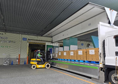 プッシュ型支援物資の真庭配送センターでの受け入れ