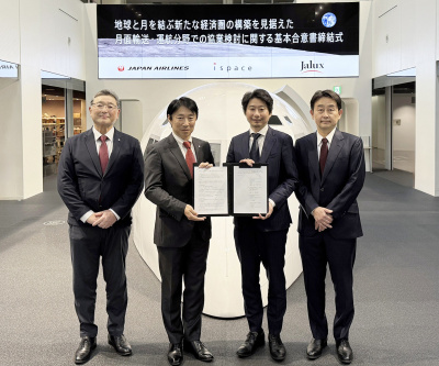 日本航空(JAL)は3日、宇宙スタートアップのispace(アイスペース、本社・東京都中央区、袴田武史代表取締役)と、月面への貨物輸送に関する協業で基本合意書を締結したと発表した。JALグループ航空