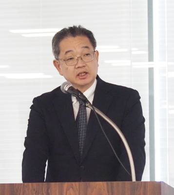 あいさつする安部港湾局長