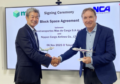 日本貨物航空(NCA)は10日、メキシコの貨物航空会社マスエア(本社・メキシコシティ)と協業し、新たにBSA(ブロックスペース契約)を締結したと発表した。中南米路線の輸送能力を強化する。 両社はBS