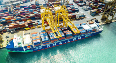 CMA―CGMのコンテナ船。協業により、海上輸送の脱炭素化を加速