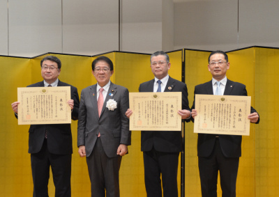 金子国交相(左から2人目)と、国土交通大臣表彰受賞者