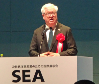 ジョージ・グラス駐日米大使は22日開幕した国際海事展示会「Sea Japan(シージャパン)2026」で基調講演を行った。グラス大使は、トランプ政権が「海事アクションプラン」に基づき、次年度予算で約