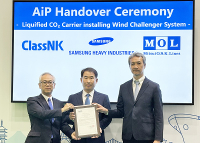 %E3%80%80%E6%97%A5%E6%9C%AC%E6%B5%B7%E4%BA%8B%E5%8D%94%E4%BC%9A%28%3Cb%3ENK%3C%2Fb%3E%29%E3%81%AF22%E6%97%A5%E3%80%81%E5%95%86%E8%88%B9%E4%B8%89%E4%BA%95%E3%81%A8%E9%9F%93%E5%9B%BD%E3%81%AE%E3%82%B5%E3%83%A0%E3%82%B9%E3%83%B3%E9%87%8D%E5%B7%A5%E6%A5%AD%E3%81%8C%E5%85%B1%E5%90%8C%E9%96%8B%E7%99%BA%E3%81%99%E3%82%8B%E3%80%81%E9%A2%A8%E5%8A%9B%E3%82%92%E6%8E%A8%E9%80%B2%E5%8A%9B%E3%81%A8%E3%81%97%E3%81%A6%E6%B4%BB%E7%94%A8%E3%81%99%E3%82%8B%E3%80%8C%E3%82%A6%E3%82%A4%E3%83%B3%E3%83%89%E3%83%81%E3%83%A3%E3%83%AC%E3%83%B3%E3%82%B8%E3%83%A3%E3%83%BC%E3%80%8D%28%E7%A1%AC%E7%BF%BC%E5%B8%86%E5%BC%8F%E6%8E%A8%E9%80%B2%E8%A3%85%E7%BD%AE%293%E5%9F%BA%E6%90%AD%E8%BC%89%E3%81%AE%E6%B6%B2%E5%8C%96CO2%28%E4%BA%8C%E9%85%B8%E5%8C%96%E7%82%AD%E7%B4%A0%29%E9%81%8B%E6%90%AC%E8%88%B9%E3%81%AB%E5%AF%BE%E3%81%97%E3%81%A6%E7%99%BA%E8%A1%8C%E3%81%97%E3%81%9F%E5%9F%BA%E6%9C%AC%E8%A8%AD%E8%A8%88%E6%89%BF%E8%AA%8D%28AiP%29%E3%81%AE%E8%A8%BC%E6%9B%B8%E6%8E%88%E4%B8%8E%E5%BC%8F%E3%82%92%E8%A1%8C%E3%81%A3%E3%81%9F%E3%80%82%E6%8E%88%E4%B8%8E%E5%BC%8F%E3%81%AF%E6%9D%B1%E4%BA%AC%E3%83%93%E3%83%83%E3%82%B0%E3%82%B5%E3%82%A4%E3%83%88%28%E6%9D%B1%E4%BA%AC%E9%83%BD%E6%B1%9F%E6%9D%B1%E5%8C%BA%29%E3%81%A7%E5%90%8C%E6%97%A5%E9%96%8B%E5%B9%95%E3%81%97%E3%81%9F%E5%9B%BD%E9%9A%9B%E6%B5%B7%E4%BA%8B%E5%B1%95%E3%80%8CSEA%E3%80%80JAPAN%28%E3%82%B7%E3%83%BC%E3%82%B8%E3%83%A3%E3%83%91%E3%83%B3%292026%E3%80%8D%E3%81%A7%E8%A1%8C%E3%82%8F%E3%82%8C%E3%81%9F%E3%80%82%3Cbr%3E%E3%80%80%E5%90%8CAiP%E3%81%AF%E3%80%8C%E9%A2%A8%E5%8A%9B%E3%82%92%E5%88%A9%E7%94%A8%E3%81%97%E3%81%9F%E8%88%B9%E8%88%B6%E8%A3%9C%E5%8A%A9%E6%8E%A8%E9%80%B2%E8%A3%85%E7%BD%AE%E3%81%AB%E9%96%A2%E3%81%99%E3%82%8B%E3%82%AC%E3%82%A4%E3%83%89%E3%83%A9%E3%82%A4%E3%83%B3%28%E7%AC%AC2%E3%83%BB2%E7%89%88%29%E3%80%8D%E3%81%AA%E3%81%A9%E3%81%AB%E5%9F%BA%E3%81%A5%E3%81%8F%E5%AF%A9%E6%9F%BB%E3%81%AB%E3%82%88%E3%82%8A%E7%99%BA%E8%A1%8C%E3%80%82%3Cbr%3E%E3%80%80%E3%82%A6%E3%82%A4%E3%83%B3%E3%83%89%E3%83%81%E3%83%A3%E3%83%AC%E3%83%B3%E3%82%B8%E3%83%A3%E3%83%BC%E3%81%AF%E3%80%81%E5%95%86%E8%88%B9%E4%B8%89%E4%BA%95%E3%81%AA%E3%81%A9%E3%81%8C%E9%96%8B%E7%99%BA%E3%81%97%E3%81%9F%E3%80%81%E4%BC%B8%E7%B8%AE%E5%8F%AF%E8%83%BD%E3%81%AA%E5%B8%86%28%E7%A1%AC%E7%BF%BC%E5%B8%86%29%E3%81%AB%E3%82%88%E3%81%A3%E3%81%A6%E9%A2%A8%E5%8A%9B%E3%82%A8%E3%83%8D%E3%83%AB%E3%82%AE%E3%83%BC%E3%82%92%E8%88%B9%E3%81%AE%E6%8E%A8%E9%80%B2%E5%8A%9B%E3%81%AB%E5%A4%89%E6%8F%9B%E3%81%99%E3%82%8B%E8%A3%85%E7%BD%AE%E3%82%92%E6%8C%87%E3%81%99%E3%80%82%3Cbr%3E%E3%80%80%E5%90%8C%E8%88%B9%E5%9E%8B%E3%81%AF%E3%80%81%E6%93%8D%E8%88%B9%E8%A8%AD%E5%82%99%E3%82%84%E5%B1%85%E4%BD%8F%E5%8C%BA%E3%82%92%E8%88%B9%E3%81%AE%E5%89%8D%E6%96%B9%E3%81%AB%E3%81%BE%E3%81%A8%E3%82%81%E3%82%8B%E3%81%93%E3%81%A8%E3%81%A7%E3%80%81%E6%93%8D%E8%88%B9%E3%81%AB%E5%BF%85%E8%A6%81%E3%81%AA%E8%A6%96%E7%95%8C%E3%82%92%E7%A2%BA%E4%BF%9D%E3%80%82%E9%AB%98%E3%81%95%E6%9C%80%E5%A4%A7%E7%B4%8449%E3%83%A1%E3%83%BC%E3%83%88%E3%83%AB%283%E6%AE%B5%E5%BC%8F%29%E3%80%81%E5%B9%85%E7%B4%8415%E3%83%A1%E3%83%BC%E3%83%88%E3%83%AB%E3%81%AE%E3%82%A6%E3%82%A4%E3%83%B3%E3%83%89%E3%83%81%E3%83%A3%E3%83%AC%E3%83%B3%E3%82%B8%E3%83%A3%E3%83%BC%E3%82%923%E5%9F%BA%E6%90%AD%E8%BC%89%E5%8F%AF%E8%83%BD%E3%81%AA%E6%A7%8B%E9%80%A0%E3%81%A8%E3%81%97%E3%81%9F%E3%80%82%3Cbr%3E