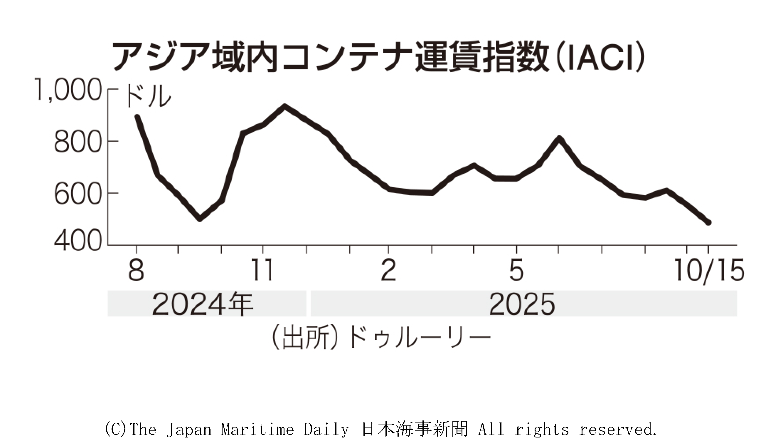 ドゥルーリー、アジア域内運賃続落。今年最安値1FEU487ドル