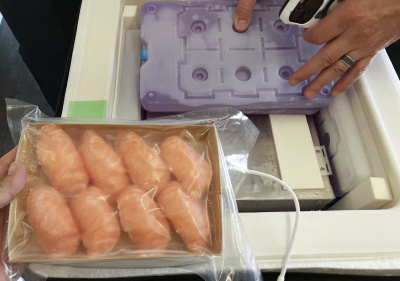 米国現地に到着した冷凍すしの状態