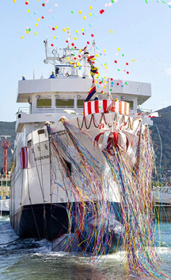 ‌【進水】三菱重工下関、練習船「若潮丸」