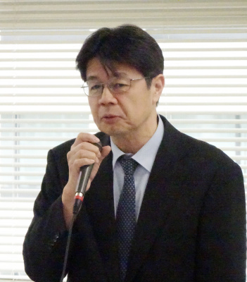 あいさつする岩波委員長