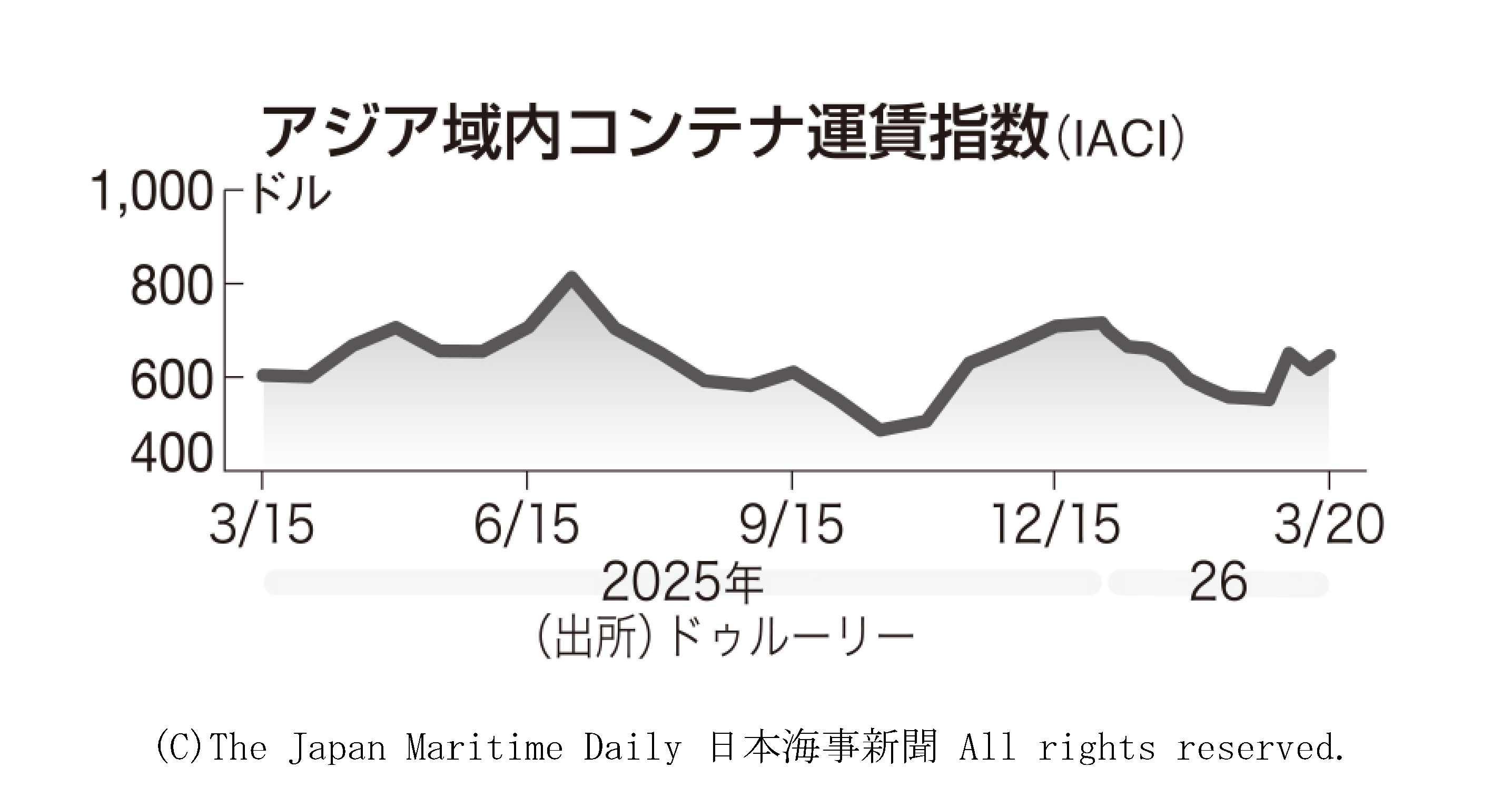 %E3%80%80%E6%B5%B7%E4%BA%8B%E8%AA%BF%E6%9F%BB%E4%BC%9A%E7%A4%BE%3Cb%3E%E3%83%89%E3%82%A5%E3%83%AB%E3%83%BC%E3%83%AA%E3%83%BC%3C%2Fb%3E%E3%81%8C3%E6%9C%8820%E6%97%A5%E4%BB%98%E3%81%A7%E3%81%BE%E3%81%A8%E3%82%81%E3%81%9F%E3%82%A2%E3%82%B8%E3%82%A2%E5%9F%9F%E5%86%85%3Cdiv+class%3D%27kiji_relation%27%3E%3Cb%3E%E3%82%B3%3C%2Fb%3E%3Cb%3E%E3%83%B3%3C%2Fb%3E%3Cb%3E%E3%83%86%3C%2Fb%3E%3Cb%3E%E3%83%8A%3C%2Fb%3E%3Cdiv+class%3Drel_link%3E%3Ca+href%3D%27%2Fstatic%2Fja%2Fcontainer%2FcontainerNational.html%27+target%3D%27_blank%27%3E%E5%9B%BD%E5%86%85%E6%B8%AF%E3%81%AE%E5%A4%96%E8%B3%87%E3%82%B3%E3%83%B3%E3%83%86%E3%83%8A%E5%8F%96%E6%89%B1%E9%87%8F%3C%2Fa%3E%3C%2Fdiv%3E%3C%2Fdiv%3E%E9%81%8B%E8%B3%83%E6%8C%87%E6%95%B0%28IACI%29%E3%81%AF%E3%80%8140%E3%83%95%E3%82%A3%E3%83%BC%E3%83%88%E3%82%B3%E3%83%B3%E3%83%86%E3%83%8A%28FEU%29%E5%BD%93%E3%81%9F%E3%82%8A646%E3%83%89%E3%83%AB%E3%81%A8%E3%81%AA%E3%82%8A%E3%80%81%E5%89%8D%E9%80%B1%E3%81%AE616%E3%83%89%E3%83%AB%E3%81%8B%E3%82%895%25%E4%B8%8A%E6%98%87%E3%81%97%E3%81%9F%E3%80%82%E5%89%8D%E9%80%B1%E3%81%AE%E4%B8%8B%E8%90%BD%E3%81%8B%E3%82%89%E5%8F%8D%E7%99%BA%E3%81%97%E3%81%9F%E3%81%8C%E3%80%812%E9%80%B1%E5%89%8D%28651%E3%83%89%E3%83%AB%29%E3%81%A8%E6%AF%94%E3%81%B9%E3%82%8B%E3%81%A81%25%E4%BD%8E%E3%81%84%E6%B0%B4%E6%BA%96%E3%80%82%E5%89%8D%E5%B9%B4%E5%90%8C%E9%80%B1%E6%AF%94%E3%81%A7%E3%81%AF7%25%E9%AB%98%E3%81%84%E3%80%82%E4%B8%AD%E5%9B%BD%E7%99%BA%E3%82%A4%E3%83%B3%E3%83%89%E5%90%91%E3%81%91%E3%81%8C%E9%AB%98%E6%AD%A2%E3%81%BE%E3%82%8A%E3%81%97%E3%81%9F%E4%B8%80%E6%96%B9%E3%80%81%E8%BF%91%E6%B5%B7%E5%9F%9F%E5%86%85%E8%88%AA%E8%B7%AF%E3%81%AF%E7%B7%8F%E3%81%98%E3%81%A6%E6%A8%AA%E3%81%B0%E3%81%84%E3%81%A0%E3%81%A3%E3%81%9F%E3%80%82%3Cbr%3E%E3%80%80%E4%B8%BB%E3%81%AA%E8%88%AA%E8%B7%AF%E5%88%A5%E3%81%A7%E3%81%AF%E4%B8%8A%E6%B5%B7%E7%99%BA%E3%83%BB%E5%8D%B0%E3%82%B8%E3%83%A3%E3%83%AF%E3%83%8F%E3%83%AB%E3%83%A9%E3%83%BC%E3%83%AB%E3%83%BB%E3%83%8D%E3%83%AB%E3%83%BC%E6%B8%AF%E3%81%8C%E5%89%8D%E9%80%B1%E6%AF%946%25%E5%AE%89%E3%81%AE2043%E3%83%89%E3%83%AB%E3%81%A8%E9%AB%98%E6%B0%B4%E6%BA%96%E3%81%AA%E3%81%8C%E3%82%89%E5%8F%8D%E8%90%BD%E3%80%82%E4%B8%8A%E6%B5%B7%E7%99%BA%E3%82%B7%E3%83%B3%E3%82%AC%E3%83%9D%E3%83%BC%E3%83%AB%E3%81%AF2%25%E4%B8%8A%E6%98%87%E3%81%AE646%E3%83%89%E3%83%AB%E3%80%81%E4%B8%8A%E6%B5%B7%E7%99%BA%E3%82%BF%E3%83%B3%E3%82%B8%E3%83%A5%E3%83%B3%E3%83%9A%E3%83%A9%E3%83%91%E3%82%B9%E3%81%AF3%25%E4%B8%8A%E6%98%87%E3%81%AE1170%E3%83%89%E3%83%AB%E3%81%A8%E4%B8%8A%E6%98%87%E5%9F%BA%E8%AA%BF%E3%82%92%E7%B6%AD%E6%8C%81%E3%81%97%E3%81%9F%E3%80%82%E4%B8%8A%E6%B5%B7%E7%99%BA%E6%A8%AA%E6%B5%9C%E3%81%AF%E6%A8%AA%E3%81%B0%E3%81%84%E3%81%AE765%E3%83%89%E3%83%AB%E3%80%82%3Cbr%3E%E3%80%80%E3%82%A2%E3%82%B8%E3%82%A2%E7%99%BA%E3%81%AF%E3%83%9B%E3%83%BC%E3%83%81%E3%83%9F%E3%83%B3%E7%99%BA%E4%B8%8A%E6%B5%B7%E3%81%8C%E6%A8%AA%E3%81%B0%E3%81%84%E3%81%AE42%E3%83%89%E3%83%AB%E3%80%81%E3%82%B8%E3%83%A3%E3%82%AB%E3%83%AB%E3%82%BF%E7%99%BA%E4%B8%8A%E6%B5%B7%E3%81%8C%E6%A8%AA%E3%81%B0%E3%81%84%E3%81%AE44%E3%83%89%E3%83%AB%E3%81%A0%E3%81%A3%E3%81%9F%E3%80%82%E9%87%9C%E5%B1%B1%E7%99%BA%E4%B8%8A%E6%B5%B7%E3%82%82%E6%A8%AA%E3%81%B0%E3%81%84%E3%81%AE47%E3%83%89%E3%83%AB%E3%80%82%E6%A8%AA%E6%B5%9C%E7%99%BA%E4%B8%8A%E6%B5%B7%E3%81%AF%E6%A8%AA%E3%81%B0%E3%81%84%E3%81%AE102%E3%83%89%E3%83%AB%E3%81%A8%E4%BD%8E%E6%B0%B4%E6%BA%96%E3%81%8C%E7%B6%9A%E3%81%84%E3%81%9F%E3%80%82%3Cbr%3E%E3%80%80IACI%E3%81%AF%E4%B8%8A%E6%B5%B7%E7%99%BA%E7%9D%80%E3%81%AE%E3%82%A2%E3%82%B8%E3%82%A2%E5%9F%9F%E5%86%8518%E4%B8%BB%E8%A6%81%E8%88%AA%E8%B7%AF%E3%81%AE%E3%82%B9%E3%83%9D%E3%83%83%E3%83%88%E9%81%8B%E8%B3%83%E3%82%92%E5%8A%A0%E9%87%8D%E5%B9%B3%E5%9D%87%E3%81%97%E3%81%9F%E3%82%82%E3%81%AE%E3%80%82%E7%99%BA%E7%9D%80%E5%9C%B0%E3%81%AE%E3%82%BF%E3%83%BC%E3%83%9F%E3%83%8A%E3%83%AB%E3%83%8F%E3%83%B3%E3%83%89%E3%83%AA%E3%83%B3%E3%82%B0%E3%83%81%E3%83%A3%E3%83%BC%E3%82%B8%E3%81%AF%E5%90%AB%E3%81%BE%E3%81%AA%E3%81%84%E3%80%82%E5%BE%93%E6%9D%A5%E3%81%AF%E9%9A%94%E9%80%B1%E7%99%BA%E8%A1%A8%E3%81%97%E3%81%A6%E3%81%8D%E3%81%9F%E3%81%8C%E3%80%812026%E5%B9%B4%E3%81%8B%E3%82%89%E9%80%B1%E6%AC%A1%E7%99%BA%E8%A1%A8%E3%81%AB%E5%A4%89%E6%9B%B4%E3%81%97%E3%81%9F%E3%80%82%3Cbr%3E