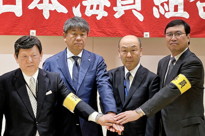 %E3%80%80%E5%85%A8%E6%97%A5%E6%9C%AC%3Cb%3E%E6%B5%B7%E5%93%A1%E7%B5%84%E5%90%88%3C%2Fb%3E%E3%81%AF3%E6%9C%8831%E6%97%A5%E3%80%81%E8%88%B9%E4%B8%BB%E5%9B%A3%E4%BD%93%E3%83%BB%E5%85%A8%E5%86%85%E8%88%AA%E3%81%A8%E3%81%AE2026%E5%B9%B4%E5%BA%A6%E5%8A%B4%E5%83%8D%E5%8D%94%E7%B4%84%E6%94%B9%E5%AE%9A%E4%BA%A4%E6%B8%89%E3%81%A7%E5%A6%A5%E7%B5%90%E3%81%97%E3%81%9F%E3%80%82%E3%80%8C%E6%A8%99%E6%BA%96%E8%88%B9%E5%93%A1%28%E9%83%A8%E5%93%A134%E2%80%9535%E6%AD%B3%29%E3%80%8D%E3%81%A7%E6%A8%99%E4%BB%A4%E5%8A%A0%E7%AE%97%E8%BE%BC%E3%81%BF%E3%81%A71%E4%B8%874790%E5%86%86%28%E3%81%86%E3%81%A1%E3%83%99%E3%83%BC%E3%82%B9%E3%82%A2%E3%83%83%E3%83%97%E3%80%88%E3%83%99%E3%82%A2%E3%80%891%E4%B8%871360%E5%86%86%29%E3%81%AA%E3%81%A94%E5%B9%B4%E9%80%A3%E7%B6%9A%E3%81%AE%E6%BA%80%E9%A1%8D%E5%9B%9E%E7%AD%94%E3%82%92%E5%BE%97%E3%81%9F%E3%80%82%3Cbr%3E%E3%80%80%E4%B8%BB%E3%81%AA%E5%90%88%E6%84%8F%E5%86%85%E5%AE%B9%E3%81%AF%E3%80%81%E6%A8%99%E4%BB%A4%E7%B5%A6%E3%81%AF%E6%A8%99%E4%BB%A418%E6%AD%B3%E3%82%921%25%281760%E5%86%86%29%E5%BC%95%E3%81%8D%E4%B8%8A%E3%81%92%E3%80%8117%E4%B8%879460%E5%86%86%E3%81%A8%E3%81%99%E3%82%8B%E2%96%BD%E8%81%B7%E5%8B%99%E7%B5%A6%E3%81%AF%E9%83%A8%E5%93%A135%E6%AD%B3%E3%83%9D%E3%82%A4%E3%83%B3%E3%83%88%E3%81%AE%E5%9F%BA%E6%9C%AC%E7%B5%A6%E3%81%AE7.0%25%E7%9B%B8%E5%BD%93%E9%A1%8D%E3%82%92%E5%9F%BA%E6%BA%96%E3%81%AB%E5%BC%95%E3%81%8D%E4%B8%8A%E3%81%92%E3%82%8B%28%E6%A8%99%E6%BA%96%E8%88%B9%E5%93%A1%E3%80%88%E9%83%A8%E5%93%A134%E2%80%9535%E6%AD%B3%E3%80%89%E3%81%A7%E6%A8%99%E4%BB%A4%E5%8A%A0%E7%AE%97%E8%BE%BC%E3%81%BF%E3%81%A71%E4%B8%874790%E5%86%86%E3%80%88%E3%81%86%E3%81%A1%E3%83%99%E3%82%A21%E4%B8%871360%E5%86%86%E3%80%89%29%E2%96%BD%E6%85%B0%E5%8A%B4%E9%87%91%E3%81%AE%E6%96%B0%E8%A8%AD%E2%96%BD%E6%97%85%E8%B2%BB%E5%9F%BA%E6%BA%96%E6%94%B9%E5%AE%9A%E2%80%95%E3%81%AA%E3%81%A9%E3%80%82%3Cbr%3E%E3%80%80%E5%B9%B4%E9%96%93%E8%87%A8%E6%99%82%E6%89%8B%E5%BD%93%E3%81%AF44%E5%89%B2%E3%80%82%3Cbr%3E%E3%80%80%E6%85%B0%E5%8A%B4%E9%87%91%E3%81%AE%E6%96%B0%E8%A8%AD%E3%81%AB%E3%81%A4%E3%81%84%E3%81%A6%E3%81%AF%E3%80%81%E4%B9%97%E8%88%B9%E6%9C%9F%E9%96%93%E3%81%8C3%E3%82%AB%E6%9C%88%E3%82%92%E8%B6%85%E3%81%88%E3%81%9F%E5%A0%B4%E5%90%88%E3%81%AF%E5%9F%BA%E6%9C%AC%E7%B5%A6%E3%81%AE10%25%E7%9B%B8%E5%BD%93%E9%A1%8D%28%E3%81%9F%E3%81%A0%E3%81%97%E3%80%813%E3%82%AB%E6%9C%88%E3%82%92%E8%B6%85%E3%81%88%E3%81%A615%E6%97%A5%E3%81%BE%E3%81%A7%E3%81%AF%E5%9F%BA%E6%9C%AC%E7%B5%A6%E3%81%AE5%25%E7%9B%B8%E5%BD%93%E9%A1%8D%29%E3%82%92%E6%94%AF%E7%B5%A6%E3%81%99%E3%82%8B%E3%80%82%E5%90%8C4%E3%82%AB%E6%9C%88%E3%82%92%E8%B6%85%E3%81%88%E3%81%9F%E5%A0%B4%E5%90%88%E3%81%AF%E5%9F%BA%E6%9C%AC%E7%B5%A6%E3%81%AE30%25%E7%9B%B8%E5%BD%93%E9%A1%8D%E3%82%92%E3%80%81%E5%90%8C5%E3%82%AB%E6%9C%88%E3%82%92%E8%B6%85%E3%81%88%E3%81%9F%E5%A0%B4%E5%90%88%E3%81%AF%E5%9F%BA%E6%9C%AC%E7%B5%A6%E3%81%AE50%25%E7%9B%B8%E5%BD%93%E9%A1%8D%E3%82%92%E6%94%AF%E7%B5%A6%E3%81%99%E3%82%8B%E3%80%82%3Cbr%3E%E3%80%801%E6%97%A5%E3%81%AE%E5%A6%A5%E7%B5%90%E8%AA%BF%E5%8D%B0%E5%BC%8F%E3%81%A7%E3%80%81%E6%9D%BE%E6%B5%A6%E6%BA%80%E6%99%B4%E7%B5%84%E5%90%88%E9%95%B7%E3%81%AF%E7%B7%8A%E8%BF%AB%E3%81%99%E3%82%8B%E4%B8%AD%E6%9D%B1%E3%82%A4%E3%83%A9%E3%83%B3%E6%83%85%E5%8B%A2%E3%81%AB%E8%A7%A6%E3%82%8C%E3%81%9F%E4%B8%8A%E3%81%A7%E3%80%81%E3%80%8C%E4%BA%A4%E6%B8%89%E5%A7%94%E5%93%A1%E5%90%84%E4%BD%8D%E3%81%AE%E8%87%AA%E4%B8%BB%E5%86%86%E6%BA%80%E8%A7%A3%E6%B1%BA%E3%81%AB%E5%90%91%E3%81%91%E3%81%9F%E5%B0%BD%E5%8A%9B%E3%81%AE%E7%B5%90%E6%9E%9C%E3%80%81%E7%89%B9%E3%81%AB%E8%B3%83%E9%87%91%E3%81%A7%E3%81%AF4%E5%B9%B4%E9%80%A3%E7%B6%9A%E3%81%A8%E3%81%AA%E3%82%8B%E3%83%99%E3%82%A2%E3%81%AE%E6%BA%80%E9%A1%8D%E5%9B%9E%E7%AD%94%E3%82%92%E3%81%AF%E3%81%98%E3%82%81%E3%80%81%E3%81%9D%E3%81%AE%E4%BB%96%E3%81%AE%E9%A0%85%E7%9B%AE%E3%82%82%E7%B5%84%E5%90%88%E8%A6%81%E6%B1%82%E9%80%9A%E3%82%8A%E3%81%A7%E8%A7%A3%E6%B1%BA%E3%81%AB%E8%87%B3%E3%81%A3%E3%81%9F%E3%81%93%E3%81%A8%E3%81%AF%E3%80%81%E3%81%93%E3%82%8C%E3%81%BE%E3%81%A7%E5%9F%B9%E3%81%A3%E3%81%A6%E3%81%8D%E3%81%9F%E5%8A%B4%E4%BD%BF%E3%81%AE%E4%BF%A1%E9%A0%BC%E9%96%A2%E4%BF%82%E3%81%AF%E3%82%82%E3%81%A8%E3%82%88%E3%82%8A%E3%80%81%E5%8A%B4%E4%BD%BF%E5%8F%8C%E6%96%B9%E3%81%8C%E6%A5%AD%E7%95%8C%E3%81%AE%E6%8A%B1%E3%81%88%E3%82%8B%E5%95%8F%E9%A1%8C%E3%81%AE%E8%A7%A3%E6%B1%BA%E3%81%AB%E5%90%91%E3%81%91%E7%9C%9F%E6%91%AF%28%E3%81%97%E3%82%93%E3%81%97%29%E3%81%AB%E5%8D%94%E8%AD%B0%E3%81%97%E3%81%9F%E7%B5%90%E6%9E%9C%E3%81%A0%E3%80%8D%E3%81%A8%E3%81%97%E3%80%81%E5%85%A8%E5%86%85%E8%88%AA%E3%81%AB%E8%AC%9D%E6%84%8F%E3%82%92%E8%A1%A8%E6%98%8E%E3%81%97%E3%81%9F%E3%80%82%3Cbr%3E%E3%80%80%E5%85%A8%E5%86%85%E8%88%AA%E3%81%AE%E9%96%A2%E7%94%B0%E6%8B%93%E7%94%9F%E4%BC%9A%E9%95%B7%E3%81%AF%E3%80%8C%E5%85%A8%E5%86%85%E8%88%AA%E8%88%B9%E5%9B%A3%E3%81%AE%E4%B8%AD%E3%81%A7%E3%82%82%E8%88%B9%E5%93%A1%E4%B8%8D%E8%B6%B3%E5%95%8F%E9%A1%8C%E3%81%8A%E3%82%88%E3%81%B3%E7%B5%8C%E5%96%B6%E7%8A%B6%E6%B3%81%E3%81%AA%E3%81%A9%E3%80%81%E3%81%9D%E3%82%8C%E3%81%9E%E3%82%8C%E3%81%AB%E9%9B%A3%E9%A1%8C%E3%82%92%E6%8A%B1%E3%81%88%E3%81%A6%E3%81%84%E3%82%8B%E3%81%93%E3%81%A8%E3%81%8B%E3%82%89%E3%80%81%E8%A6%81%E6%B1%82%E5%86%85%E5%AE%B9%E3%81%AB%E5%AF%BE%E3%81%97%E3%81%A6%E7%9B%B8%E5%BD%93%E3%81%AA%E9%87%8D%E5%9C%A7%E3%81%A8%E9%97%98%E3%81%84%E3%81%AA%E3%81%8C%E3%82%89%E6%85%8E%E9%87%8D%E3%81%AB%E6%A4%9C%E8%A8%8E%E3%82%92%E9%87%8D%E3%81%AD%E3%81%9F%E7%B5%90%E6%9E%9C%E3%80%81%E8%8B%A6%E6%B8%8B%E3%81%AE%E6%B1%BA%E6%96%AD%E3%81%A7%E6%BA%80%E9%A1%8D%E5%9B%9E%E7%AD%94%E3%81%AB%E8%87%B3%E3%81%A3%E3%81%9F%E3%80%8D%E3%81%AA%E3%81%A9%E3%81%A8%E8%AA%9E%E3%81%A3%E3%81%9F%E3%80%82%3Cbr%3E