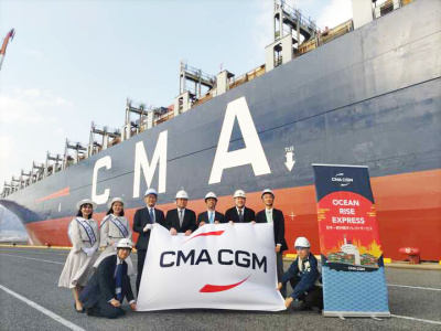 神戸港、欧州直航船の初寄港歓迎。CMA CGM「OCR」サービス