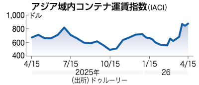 %E3%80%80%E6%B5%B7%E4%BA%8B%E8%AA%BF%E6%9F%BB%E4%BC%9A%E7%A4%BE%3Cb%3E%E3%83%89%E3%82%A5%E3%83%AB%E3%83%BC%E3%83%AA%E3%83%BC%3C%2Fb%3E%E3%81%8C17%E6%97%A5%E4%BB%98%E3%81%A7%E3%81%BE%E3%81%A8%E3%82%81%E3%81%9F%E3%82%A2%E3%82%B8%E3%82%A2%E5%9F%9F%E5%86%85%3Cdiv+class%3D%27kiji_relation%27%3E%3Cb%3E%E3%82%B3%3C%2Fb%3E%3Cb%3E%E3%83%B3%3C%2Fb%3E%3Cb%3E%E3%83%86%3C%2Fb%3E%3Cb%3E%E3%83%8A%3C%2Fb%3E%3Cdiv+class%3Drel_link%3E%3Ca+href%3D%27%2Fstatic%2Fja%2Fcontainer%2FcontainerNational.html%27+target%3D%27_blank%27%3E%E5%9B%BD%E5%86%85%E6%B8%AF%E3%81%AE%E5%A4%96%E8%B3%87%E3%82%B3%E3%83%B3%E3%83%86%E3%83%8A%E5%8F%96%E6%89%B1%E9%87%8F%3C%2Fa%3E%3C%2Fdiv%3E%3C%2Fdiv%3E%E9%81%8B%E8%B3%83%E6%8C%87%E6%95%B0%28IACI%29%E3%81%AF%E3%80%8140%E3%83%95%E3%82%A3%E3%83%BC%E3%83%88%E3%82%B3%E3%83%B3%E3%83%86%E3%83%8A%28FEU%29%E5%BD%93%E3%81%9F%E3%82%8A870%E3%83%89%E3%83%AB%E3%81%A8%E3%81%AA%E3%82%8A%E3%80%81%E5%89%8D%E9%80%B1%E3%81%AE839%E3%83%89%E3%83%AB%E3%81%8B%E3%82%894%25%E4%B8%8A%E6%98%87%E3%81%97%E3%81%9F%E3%80%82%E5%89%8D%E9%80%B1%E3%81%AF3%E5%89%B2%E9%AB%98%E3%81%AE%E6%80%A5%E9%A8%B0%E3%81%AE%E5%8F%8D%E5%8B%95%E3%81%A74%E9%80%B1%E3%81%B6%E3%82%8A%E3%81%AB%E4%B8%8B%E8%90%BD%E3%81%97%E3%81%A6%E3%81%84%E3%81%9F%E3%80%82%E5%89%8D%E3%80%85%E9%80%B1%E6%AF%941%25%E9%AB%98%E3%80%81%E5%89%8D%E5%B9%B4%E5%90%8C%E9%80%B1%E6%AF%94%E3%81%A7%E3%81%AF23%25%E9%AB%98%E3%81%A8%E9%AB%98%E6%B0%B4%E6%BA%96%E3%81%8C%E7%B6%9A%E3%81%8F%E3%80%82%3Cbr%3E%E3%80%80%E4%B8%BB%E3%81%AA%E8%88%AA%E8%B7%AF%E5%88%A5%E3%81%A7%E3%81%AF%E3%80%81%E4%B8%8A%E6%B5%B7%E7%99%BA%E3%83%BB%E5%8D%B0%E3%82%B8%E3%83%A3%E3%83%AF%E3%83%8F%E3%83%AB%E3%83%A9%E3%83%BC%E3%83%AB%E3%83%BB%E3%83%8D%E3%83%AB%E3%83%BC%E5%90%91%E3%81%91%E3%81%8C%E5%89%8D%E9%80%B1%E6%AF%945%25%E5%AE%89%E3%81%AE1275%E3%83%89%E3%83%AB%E3%81%A8%E7%B6%9A%E8%90%BD%E3%80%823%E6%9C%88%E3%81%AF2000%E3%83%89%E3%83%AB%E8%B6%85%E3%81%AE%E9%AB%98%E5%80%A4%E3%81%A7%E6%8E%A8%E7%A7%BB%E3%81%97%E3%81%A6%E3%81%84%E3%81%9F%E3%80%82%E4%B8%8A%E6%B5%B7%E7%99%BA%E3%82%B7%E3%83%B3%E3%82%AC%E3%83%9D%E3%83%BC%E3%83%AB%E3%81%AF5%25%E9%AB%98%E3%81%AE771%E3%83%89%E3%83%AB%E3%80%81%E4%B8%8A%E6%B5%B7%E7%99%BA%E3%82%BF%E3%83%B3%E3%82%B8%E3%83%A5%E3%83%B3%E3%83%9A%E3%83%A9%E3%83%91%E3%82%B9%E3%81%AF7%25%E9%AB%98%E3%81%AE1356%E3%83%89%E3%83%AB%E3%81%A8%E3%81%9D%E3%82%8D%E3%81%A3%E3%81%A6%E4%B8%8A%E6%98%87%E3%81%97%E3%81%9F%E3%80%82%E4%B8%8A%E6%B5%B7%E7%99%BA%E6%A8%AA%E6%B5%9C%E3%81%AF790%E3%83%89%E3%83%AB%E3%81%A7%E6%A8%AA%E3%81%B0%E3%81%84%E3%80%82%3Cbr%3E%E3%80%80%E3%82%A2%E3%82%B8%E3%82%A2%E7%99%BA%E3%81%A7%E3%81%AF%E3%80%81%E3%83%9B%E3%83%BC%E3%83%81%E3%83%9F%E3%83%B3%E7%99%BA%E4%B8%8A%E6%B5%B7%E3%81%8C%E5%89%8D%E9%80%B1%E6%AF%9436%25%E9%AB%98%E3%81%AE60%E3%83%89%E3%83%AB%E3%80%81%E3%82%B8%E3%83%A3%E3%82%AB%E3%83%AB%E3%82%BF%E7%99%BA%E4%B8%8A%E6%B5%B7%E3%81%8C12%25%E9%AB%98%E3%81%AE57%E3%83%89%E3%83%AB%E3%81%A8%E4%B8%8A%E6%98%87%E3%80%82%E9%87%9C%E5%B1%B1%E7%99%BA%E4%B8%8A%E6%B5%B7%E3%81%AF%E6%A8%AA%E3%81%B0%E3%81%84%E3%81%AE53%E3%83%89%E3%83%AB%E3%80%81%E6%A8%AA%E6%B5%9C%E7%99%BA%E4%B8%8A%E6%B5%B7%E3%81%AF7%25%E5%AE%89%E3%81%AE95%E3%83%89%E3%83%AB%E3%81%A0%E3%81%A3%E3%81%9F%E3%80%82%3Cbr%3E%E3%80%80IACI%E3%81%AF%E4%B8%8A%E6%B5%B7%E7%99%BA%E7%9D%80%E3%81%AE%E3%82%A2%E3%82%B8%E3%82%A2%E5%9F%9F%E5%86%8518%E4%B8%BB%E8%A6%81%E8%88%AA%E8%B7%AF%E3%81%AE%E3%82%B9%E3%83%9D%E3%83%83%E3%83%88%E9%81%8B%E8%B3%83%E3%82%92%E5%8A%A0%E9%87%8D%E5%B9%B3%E5%9D%87%E3%81%97%E3%81%9F%E3%82%82%E3%81%AE%E3%80%82%E7%99%BA%E7%9D%80%E5%9C%B0%E3%81%AE%E3%82%BF%E3%83%BC%E3%83%9F%E3%83%8A%E3%83%AB%E3%83%8F%E3%83%B3%E3%83%89%E3%83%AA%E3%83%B3%E3%82%B0%E3%83%81%E3%83%A3%E3%83%BC%E3%82%B8%E3%81%AF%E5%90%AB%E3%81%BE%E3%81%AA%E3%81%84%E3%80%822026%E5%B9%B4%E3%81%8B%E3%82%89%E9%80%B1%E6%AC%A1%E7%99%BA%E8%A1%A8%E3%81%A8%E3%81%AA%E3%82%8A%E3%80%81%E5%B8%82%E6%B3%81%E3%81%AE%E7%9F%AD%E6%9C%9F%E5%A4%89%E5%8B%95%E3%82%92%E5%8F%8D%E6%98%A0%E3%81%97%E3%82%84%E3%81%99%E3%81%8F%E3%81%AA%E3%81%A3%E3%81%A6%E3%81%84%E3%82%8B%E3%80%82%3Cbr%3E