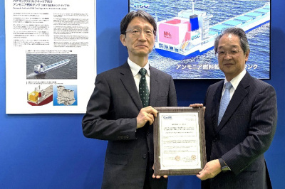 日本海事協会(NK)は22日、次世代環境船舶開発センター(GSC)が開発した独立方形タンク搭載のアンモニア焚(だ)きパナマックスバルカーに対し、基本設計承認(AiP)を発行したと発表した。暴露甲板部